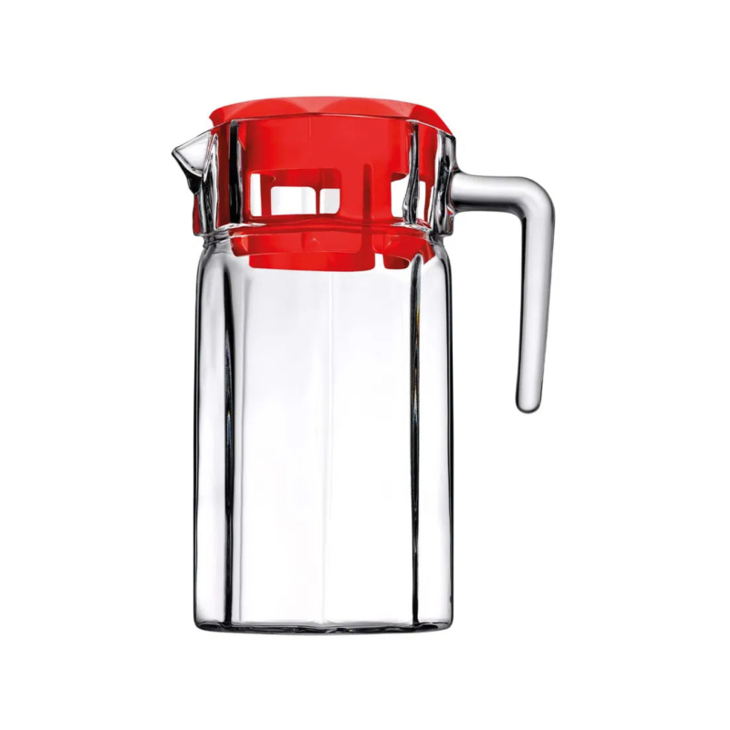 Elegantiškas ir praktiškas stiklinis ąsotis, skirtas vandeniui, sultims, limonadui ar kitiems gėrimams patiekti. Skaidrus stiklas leidžia matyti turinį, o ryškus dangtelis suteikia modernų akcentą ir apsaugo nuo dulkių bei nešvarumų. Patogi rankena užtikrina saugų ir patogų pylimą.