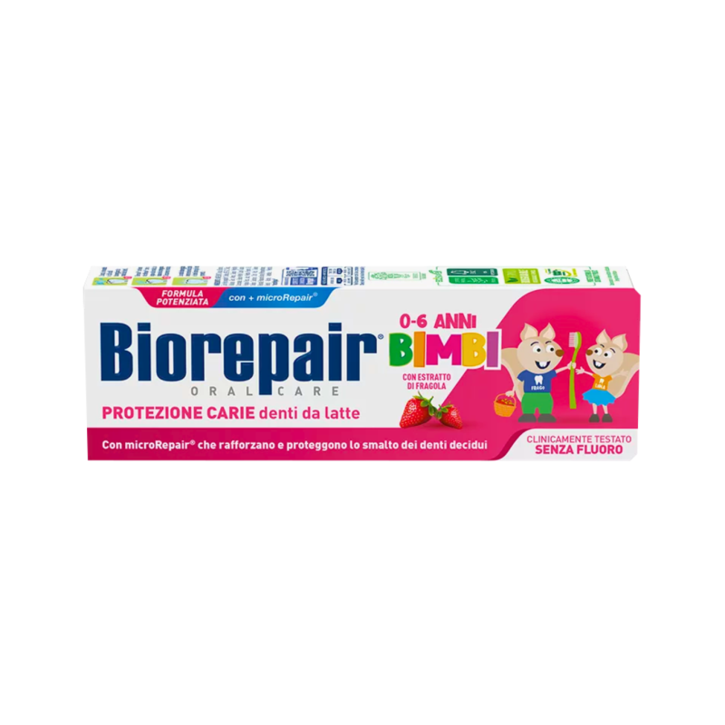 Dantų pasta Biorepair Kids apsaugo nuo dantų ėduonies ir tinka burnos higienai nuo pirmojo kūdikio dantuko. Vaikų dantų emalis yra subtilesnis ir pažeidžiamesnis nei suaugusiųjų dantų emalis. Sudėtyje yra microRepair biologiškai aktyvių mikrodalelių, kurios stiprina dantų emaliį, skatina sveiką ir teisingą nuolatinių dantų vystymasi. Jo veiksmingumas yra kliniškai patikrintas. Formulė yra subtili, vaisinio skonio su braškių ekstraktu, gaivinanti. Dantų pastos sudėtyje nėra fluoridų, abrazyvinės medžiagos silicio dioksido, titano dioksido, sintetinių putojimą sukeliančių medžiagų, parabenų, dažiklių.