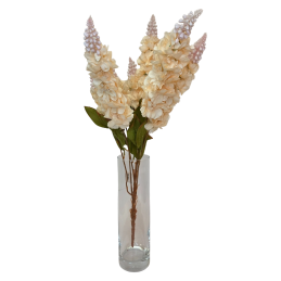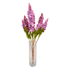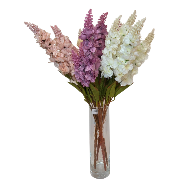 Grakšti dirbtinių gėlių puokštė su ilgais žiedynais ir sodria žaluma.