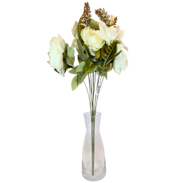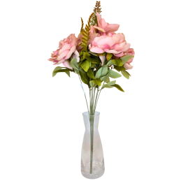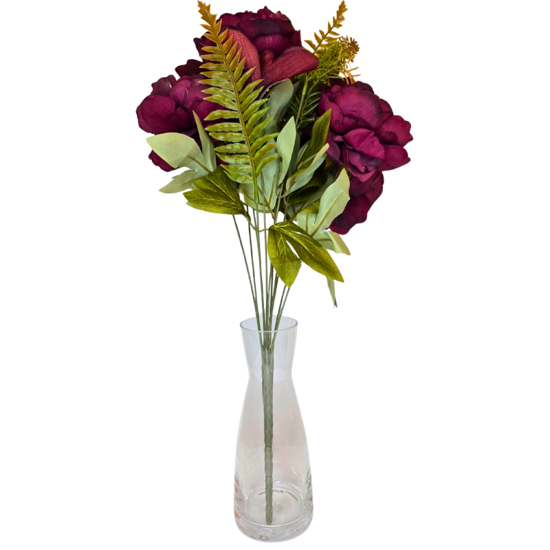 Dirbtinė gėlių puokštė – dekoratyvus ir ilgaamžis interjero akcentas. Puokštę sudaro keli dideli, sodrių spalvų žiedai, papildyti dekoratyviniais lapeliais ir žaluma, kurie suteikia kompozicijai natūralumo ir pilnumo. Kruopščiai pagamintos detalės atkartoja tikrų gėlių formą ir tekstūrą, todėl puokštė atrodo estetiškai ir elegantiškai.