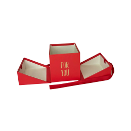 Stilinga raudona dovanų dėžutė su atlasiniu kaspinu ir užrašu FOR YOU – puikus pasirinkimas dovanai, kurią norite pateikti su išskirtiniu dėmesiu. Ryški spalva ir auksinis užrašas suteikia šventiškumo bei elegancijos. Dėžutė pagaminta iš tvirto kartono, lengvai surenkama ir paruošta naudoti be papildomo įpakavimo.