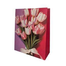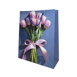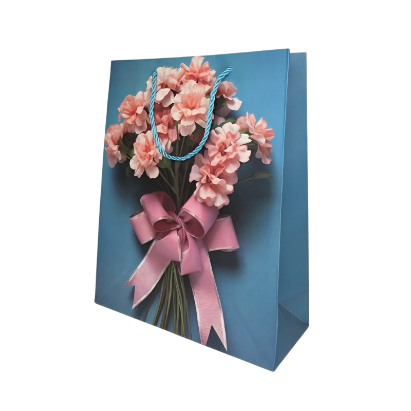 Stilingas dovanų maišelis su žydinčių gėlių puokštėmis – puikus pasirinkimas šventei ar ypatingai progai. Kiekvienas dizainas vaizduoja elegantiškas gėles su kaspinu, suteikiančias švelnumo, romantikos ir šventiškumo įspūdį. Tvirtas popierius ir dekoratyvinės virvelinės rankenos užtikrina patogų naudojimą. Puikiai tinka gimtadieniams, jubiliejams, ar bet kokiai progai.