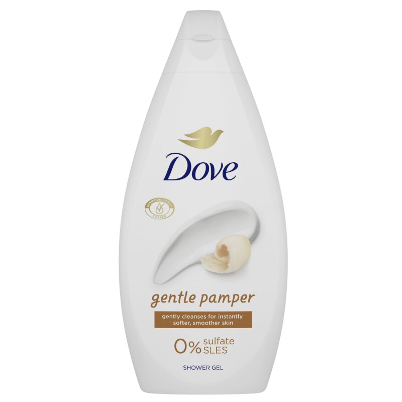Švelnus Dove Gentle Pamper dušo gelis, skirtas kasdieniam odos prausimui ir komfortui. Švelniai valo odą, padeda išlaikyti jos minkštumą ir glotnumą jau po pirmo naudojimo.