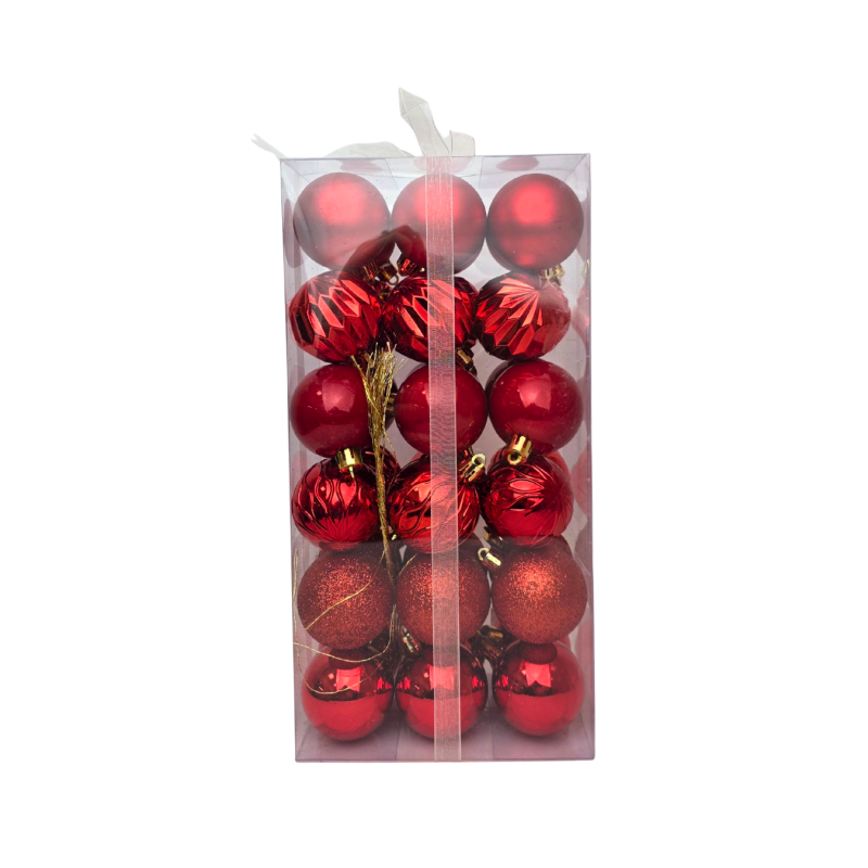 Kalėdiniai eglutės žaisliukai – tai klasikinis ir visada madingas pasirinkimas, suteiksiantis Jūsų namams šilumos ir šventinės nuotaikos. Ryškūs raudonos spalvos burbulai su skirtingomis tekstūromis – matiniai, blizgūs, blizgučiais dengti ir raštuoti – puikiai dera tarpusavyje ir sukuria elegantišką eglutės dekorą.