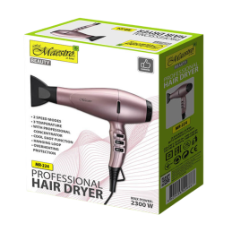 Šis plaukų džiovintuvas – galingas ir patikimas įrenginys, skirtas greitam bei efektyviam plaukų formavimui namuose ar profesionaliam naudojimui. 2300 W galia užtikrina stiprų oro srautą, leidžiantį greitai išdžiovinti net storus ar ilgus plaukus.