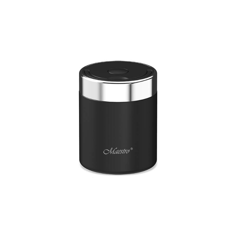 Šis „Maestro“ termosas (MR-1649-75-BLACK) yra apvalios formos su dangčiu, skirtas maistui. Pagrindinė korpuso medžiaga yra nerūdijantis plienas, o rankenų ir išorinio dangtelio medžiaga – plastikas.