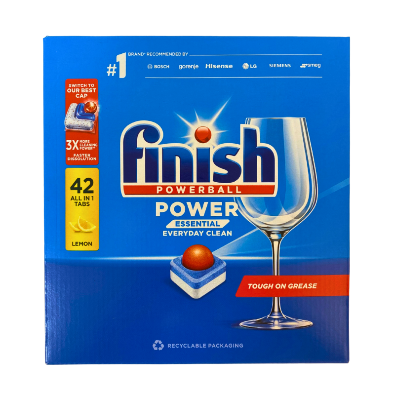Citrinų kvapo indaplovių indų ploviklio tabletės „Finish Power Essential“.