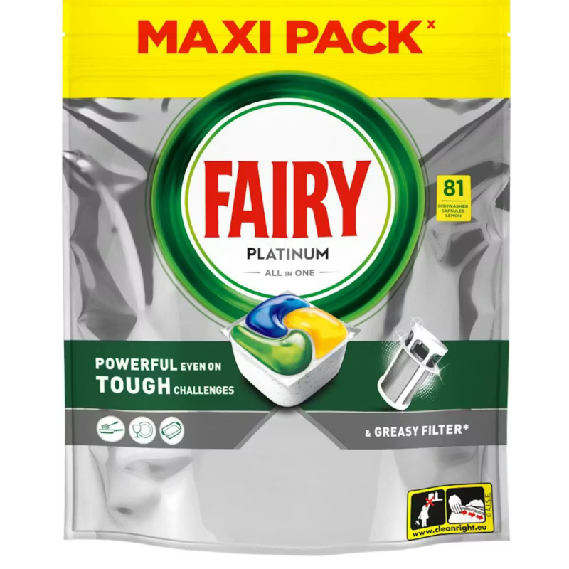Fairy Platinum All in One indaplovių kapsulės užtikrina itin galingą valymą net sudėtingiausiais atvejais, efektyviai šalina įsisenėjusius nešvarumus ir riebalus, padeda palaikyti indaplovės filtrų švarą bei palieka indus nepriekaištingai švarius ir blizgančius.