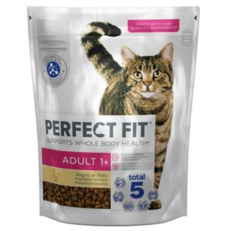 Džiovintos paukštienos baltymai (įskaitant vištienos 19%), kukurūzai, kviečiai, sojų baltymai, aliejai ir riebalai sojų miltai, spirgučių baltymai, mineralai, hidrolizuotos kepenėles, celiuliozė, mielės (įskaitant natūralių alaus mielių 0,2%)