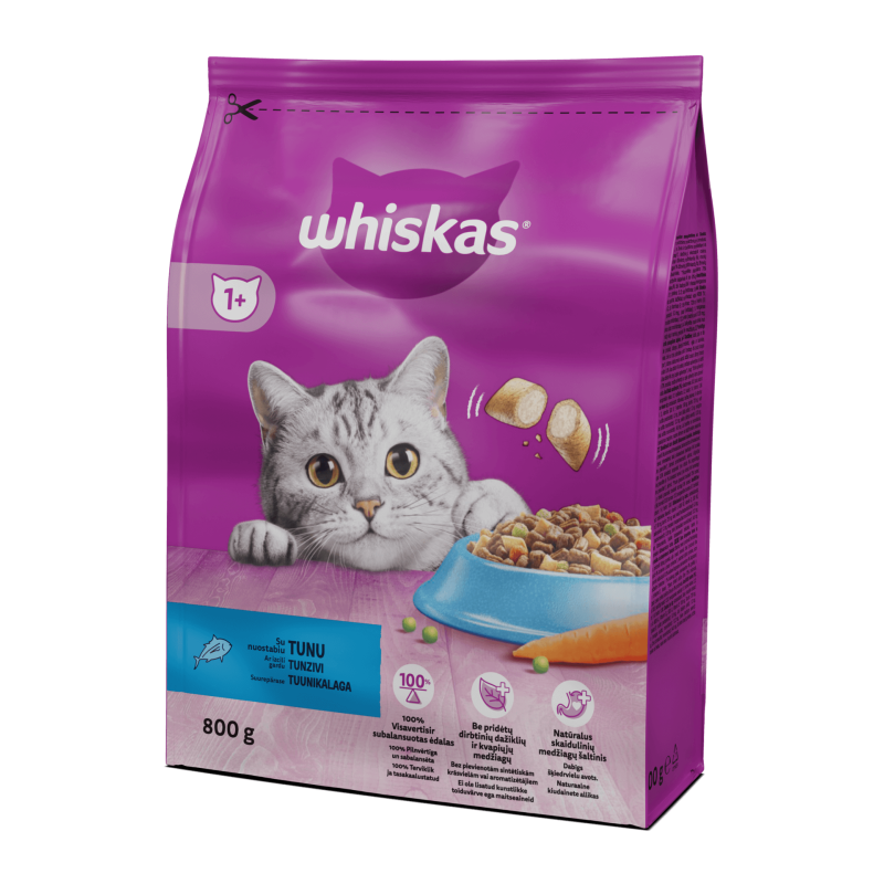 100 % visavertis ir subalansuotas sausas ėdalas WHISKAS® 1+ yra viskas, ko reikia jūsų suaugusiai katei kiekvieną dieną. Katės mėgsta šiuos minkšto įdaro ir traškios plutelės gabaliukus. Kruopščiai subalansuoti, kokybiški ingredientai - cinkas, kuris palaiko sveiką odą ir plaukus bei vitaminas A, kuris padeda išlaikyti ryškų regėjimą. Kiekviena WHISKAS® formulė užtikrina puikų vitaminų ir mineralų balansą.