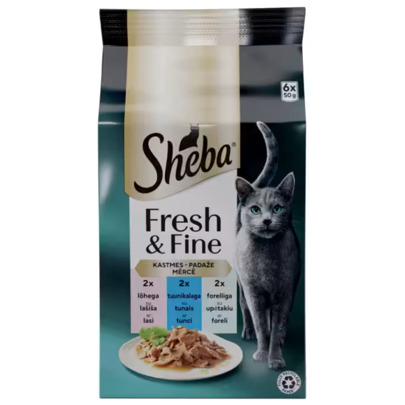 Sudėtis: Su lašiša: mėsa ir mėsos perdirbimo produktai* (95% natūralus), žuvis ir žuvies perdirbimo produktai* (įskaitant lašišos 4% kiekviename gabalėlyje**), daržovių perdirbimo produktai, mineralai, daržovių baltymų ekstraktai, įvairus cukrus. *Natūralus. **Gabalėliai sudaro 43% gaminio.