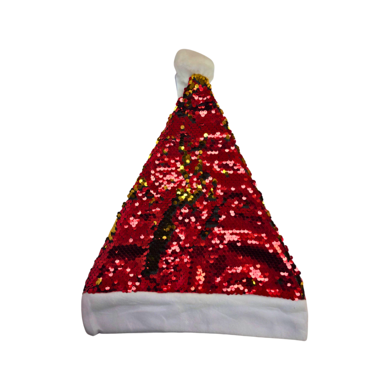 Kalėdinė kepurė su blizgiais žvyneliais – stilingas ir linksmas šventinis aksesuaras, puikiai tinkantis tiek vaikams, tiek suaugusiesiems. Kepurė dekoruota dvispalviais blizgučiais, kurie keičia spalvą braukiant ranka, suteikdami žaismingumo ir išskirtinumo. Minkšta balta juosta ir pūkuotas galiukas suteikia jaukumo ir klasikinės Kalėdų nuotaikos.