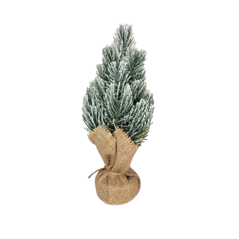 Dekoratyvinė mini apsnigta eglutė su džiuto pagrindu