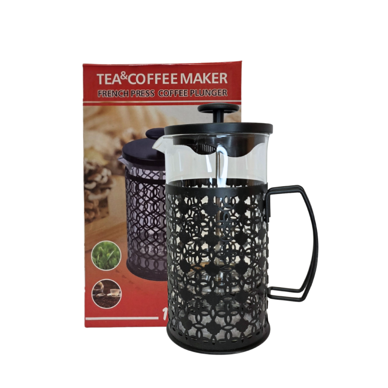 Elegantiškas kavinukas / arbatinukas su išskirtiniu juodo metalo raštuotu rėmeliu – puikus pasirinkimas kavos ar arbatos mėgėjams. Pagamintas iš karščiui atsparaus stiklo ir tvirto metalo, šis presas ne tik atrodo stilingai, bet ir yra itin patogus naudoti. Nerūdijančio plieno filtras užtikrina, kad gėrimas būtų švarus ir aromatingas.