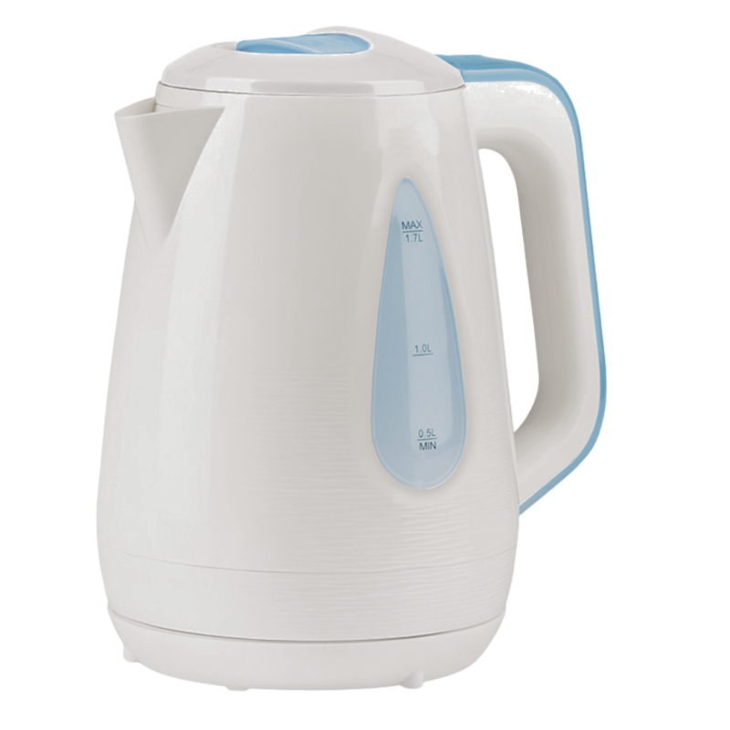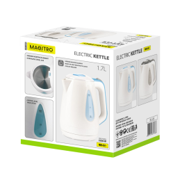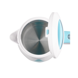 Aiškiai matomas vandens lygio indikatorius leidžia lengvai kontroliuoti vandens kiekį, o ergonomiška rankena užtikrina patogų ir stabilų laikymą. Švelni balta spalva su mėlynais akcentais suteikia virduliui modernų ir tvarkingą dizainą, kuris lengvai dera prie įvairaus virtuvės interjero.