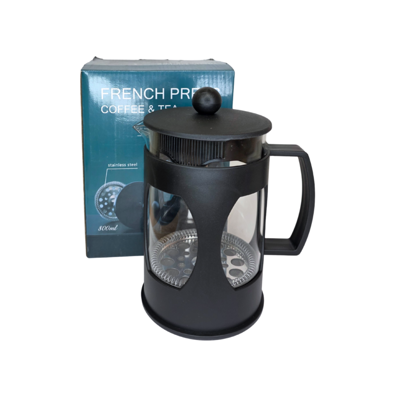 Praktiškas ir stilingas 800 ml kavinukas puikiai tinka aromatingai kavai, arbatai ar žolelių užpilams ruošti. Tvirtas stiklinis indas įdėtas į patvarų juodos spalvos korpusą užtikrina saugų naudojimą, o nerūdijančio plieno filtrų sistema leidžia mėgautis švariu ir sodriu gėrimo skoniu. Patogi rankena ir stabilus dangtelis užtikrina lengvą ir patogų pilstymą.