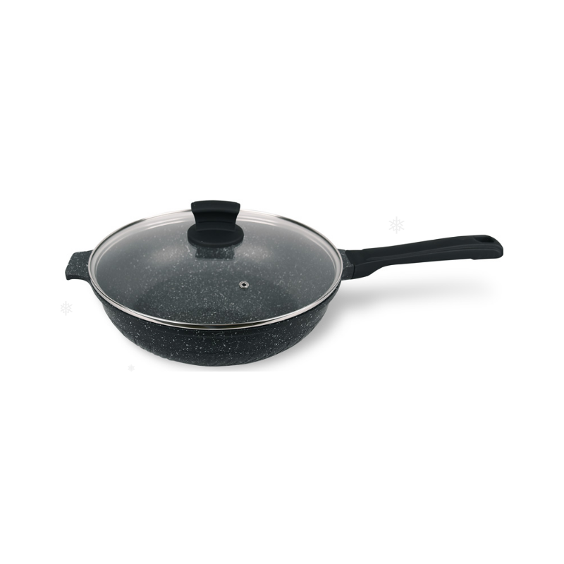 Maestro MR-1226-28 yra gili, universali keptuvė (taip pat vadinama soteiniku), sukurta patogiam kasdieniam naudojimui. Pagaminta iš patvaraus aliuminio, ji pasižymi granitine nepridegančia danga ir yra suderinama su visų tipų viryklėmis, įskaitant indukcines. Komplekte esantis stiklinis dangtis praplečia gaminimo galimybes, leidžiant patiekalus ne tik kepti, bet ir troškinti.