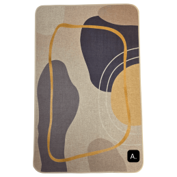 Stilingi abstraktaus dizaino kilimėliai su šiltų atspalvių geometriniais ir organiniais raštais.