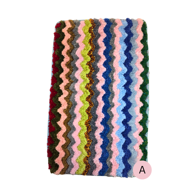 Ryškūs ir minkšti kilimėliai su spalvingu zigzago raštu – puikus pasirinkimas tiek voniai, tiek miegamajam, prieškambariui ar vaikų kambariui. Jų purus ir švelnus paviršius suteikia komfortą, gerai sugeria drėgmę ir greitai džiūsta. Dėl neslystančio pagrindo kilimėlis stabiliai laikosi ant grindų ir užtikrina saugumą kasdien naudojant.