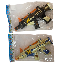 Įspūdingo dizaino žaislinis automatinis šautuvas su šviesos ir garso efektais suteikia žaidimams tikroviškumo ir smagaus veiksmo! Nuspaudus gaiduką, šautuvas šviečia, skleidžia garsus bei juda imitacinės kulkos.