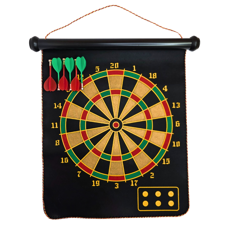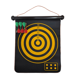 Linksmas ir saugus magnetinis smiginis – puikus žaidimas vaikams ir suaugusiems! Dvipusė lenta leidžia žaisti dviem būdais – viena pusė su taškų apskritimais, kita – klasikinė smiginio versija su skaičiais. Magnetiniai strėlytės galai saugūs ir nepažeidžia paviršių.