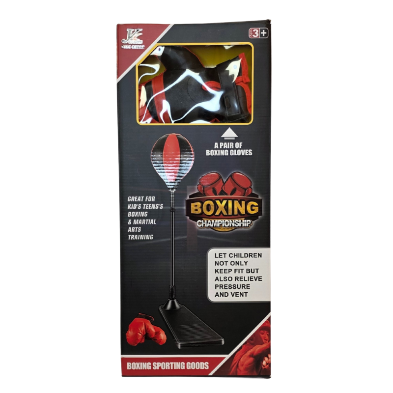 Smagus ir aktyvus bokso treniruočių rinkinys vaikams, padedantis lavinti reakciją, koordinaciją ir ištvermę! Rinkinyje yra stovinti bokso kriaušė su spyruokle ir pirštinės. Kriaušės aukštis reguliuojamas.