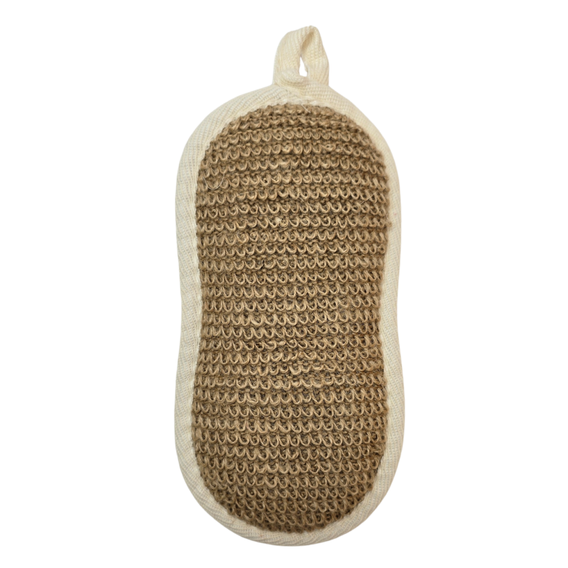 Viena pusė – švelnus audinys, švelniai masažuoja ir valo odą, kita – šiurkštesnė augalinio pluošto tekstūra, puikiai tinka šveitimui bei negyvų odos ląstelių pašalinimui.