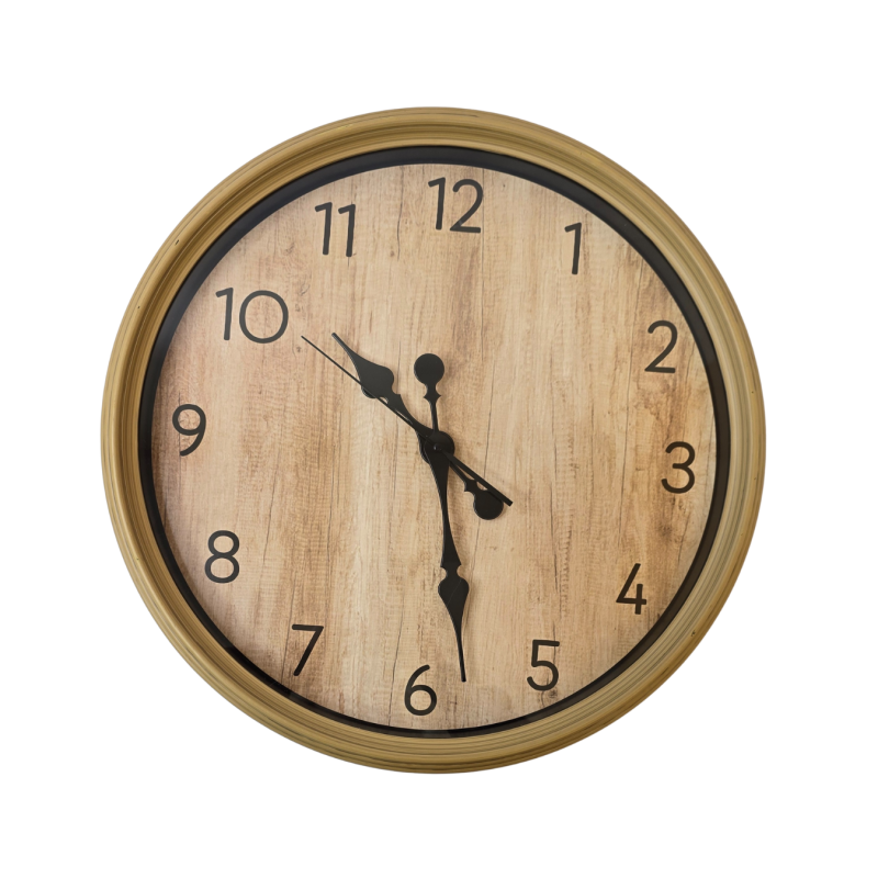 Paprasto, bet stilingo dizaino sieninis laikrodis su medžio rašto fonu suteiks jaukumo ir šilumos bet kokiam interjerui. Juodos rodyklės ir aiškūs skaičiai užtikrina lengvą laiko skaitymą, o šviesus, natūralus fonas puikiai dera prie klasikinių, skandinaviškų ar modernių namų interjerų.