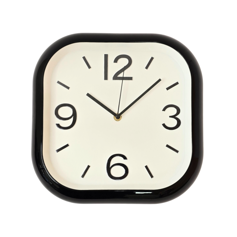Modernus sieninis laikrodis, išsiskiriantis švariu ir minimalistiniu dizainu. Juodas blizgus rėmelis kontrastuoja su šviesiu ciferblatu, o stambūs skaičiai ir plonos rodyklės užtikrina puikų matomumą net iš toliau. Tai universalus laikrodis, puikiai tinkantis tiek namams, tiek biurui.