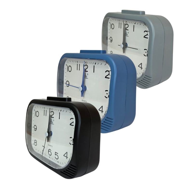 Modernus ir praktiškas kvarcinis žadintuvas su minimalistiniu dizainu. Aiškus baltas ciferblatas su kontrastingais skaičiais leidžia lengvai matyti laiką tiek dieną, tiek naktį. Turi patogų signalinio žadintuvo mygtuką viršuje.