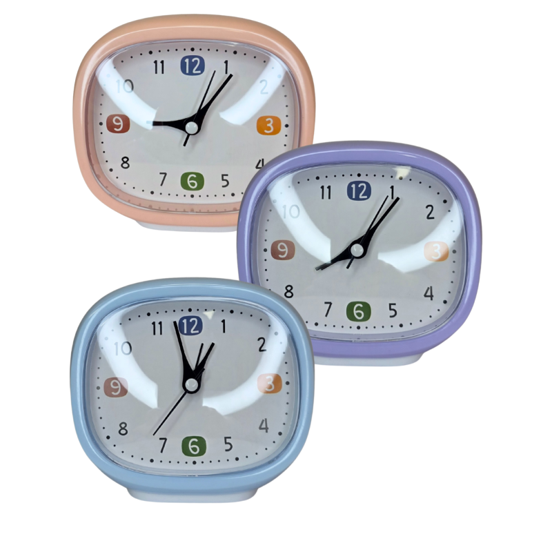 Spalvingi, žaismingo dizaino žadintuvai, kurie suteiks kambariui jaukumo ir padės pradėti dieną laiku. Aiškus ciferblatas su spalvotais skaičiais ir tylus veikimas užtikrina patogų naudojimą.