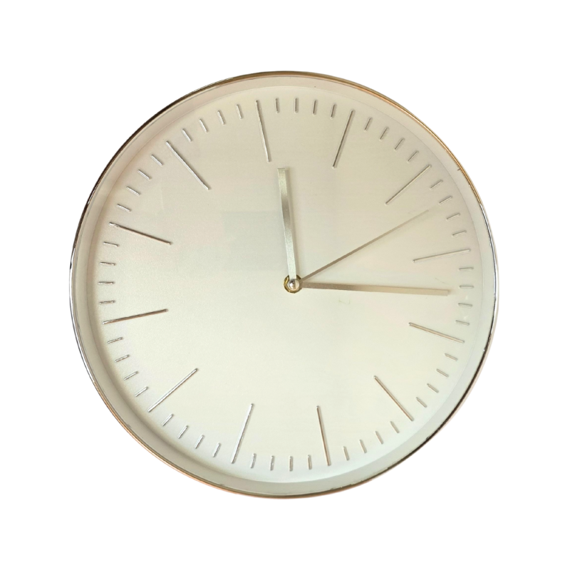 Modernus, minimalistinio dizaino sieninis laikrodis su subtiliomis sidabrinėmis detalėmis. Laikrodis be skaičių – tik su elegantiškomis žymomis, todėl atrodo itin šiuolaikiškai ir dera prie įvairių interjero stilių.