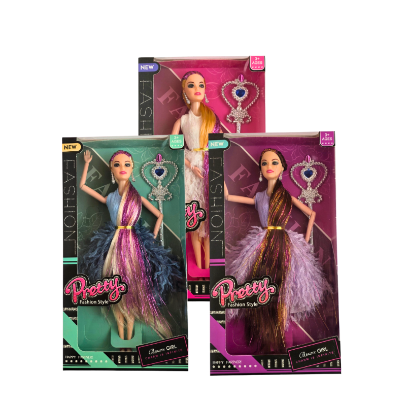 Spindinti lėlė „Pretty Fashion Style“ – tikra mados podiumo žvaigždė! Ji vilki prabangią suknelę su pūstu sijonu ir spalvingais, blizgiais plaukais. Kiekviena lėlė turi gražų aksesuarą – širdelės formos lazdelę, kuri suteikia žaidimui dar daugiau žavesio. Šis žaislas lavina vaikų kūrybiškumą, vaizduotę ir leidžia kurti nuosavas mados istorijas.