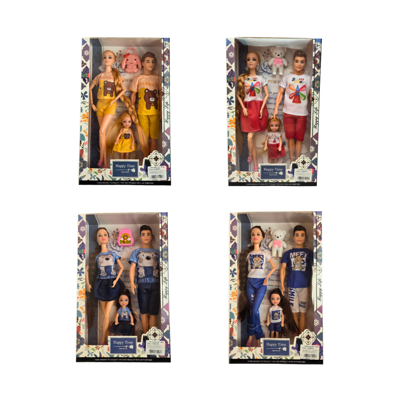Smagus lėlių šeimos rinkinys „Happy Time“ – puiki dovana vaikams, mėgstantiems kurti istorijas ir vaidinti šeimos gyvenimo scenas. Rinkinyje rasite tris lėles: tėtį, mamą ir dukrą Kiekviena lėlė aprengta derančiais drabužiais, o ilgi plaukai leidžia kurti įvairias šukuosenas. Šis rinkinys lavina vaikų kūrybiškumą, vaizduotę ir socialinius įgūdžius, skatindamas vaidmenų žaidimus.