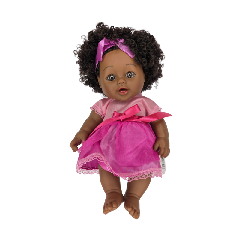 Ši žavinga lėlytė tikrai patrauks dėmesį savo nuostabiomis garbanomis ir ryškia suknele. Ji aprengta dailia rausva suknele su tiulio sijonu ir nėrinukų krašteliais, papuošta kaspinu.
