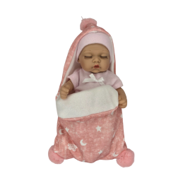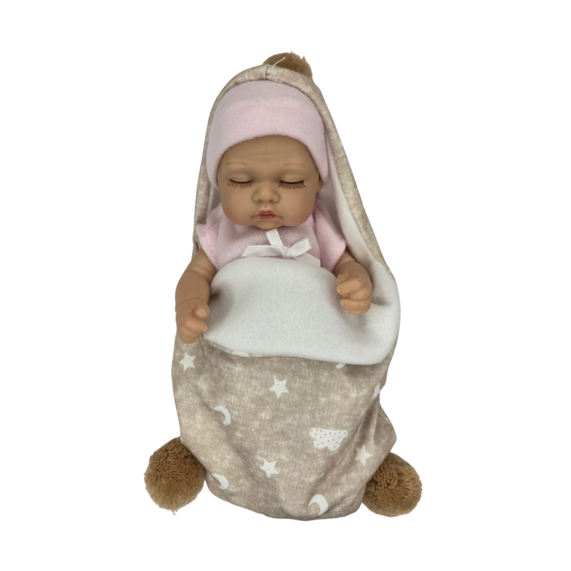 Šios jaukios miegantys kūdikėliai yra supakuoti į minkštus, pūkuotus vokus su žvaigždučių ir mėnuliukų raštu. Lėlytės turi užmerktas akis, švelnius veido bruožus ir yra aprengtos mielais rūbeliais bei kepuryte.