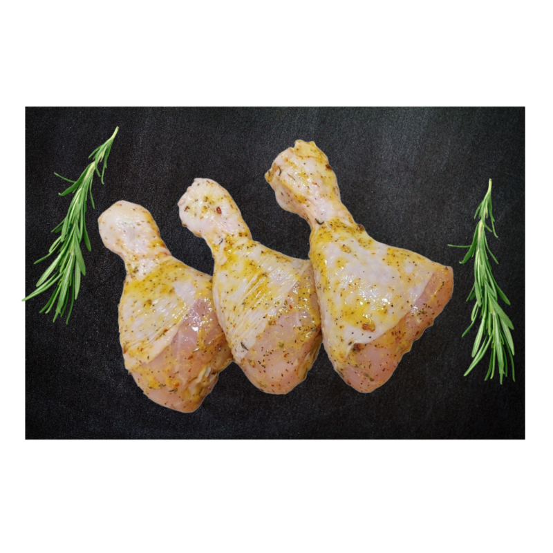 SUDEDAMOSIOS DALYS: viščiukų broilerių blauzdelės 94%, marinolis "Lemon-Pfeffer" - halal (Augalinis aliejus (rapsų), augaliniai riebalai (rapsų, Sal. (šorėjų) sviestas įvairiomis dalimis), jūros druska, prieskoniai (pipirai, svogūnai, paprikos, ciberžolė), cukrus, natūralios kvapiosios medžiagos, čiobreliai.