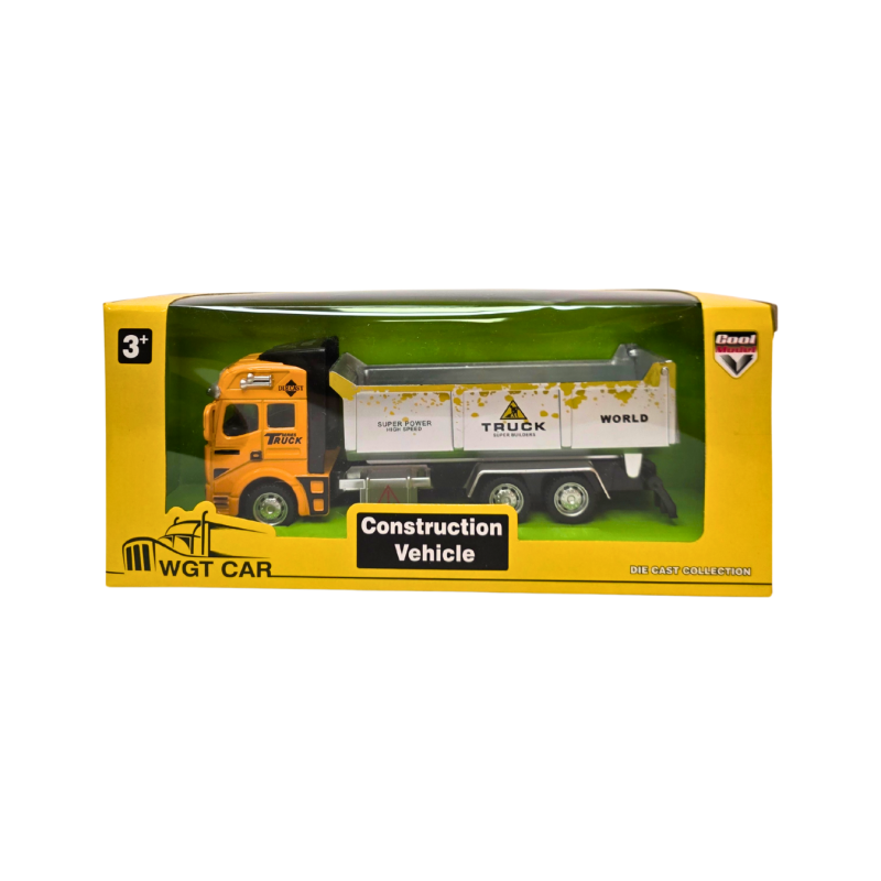 Tvirtas ir realistiškas statybinis sunkvežimis iš serijos WGT Car – Die Cast Collection. Pagamintas iš metalo ir plastiko derinio, šis modelis puikiai tinka mažiesiems statybininkams. Galima rinktis skirtingus modelius – savivartį arba kraną.