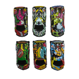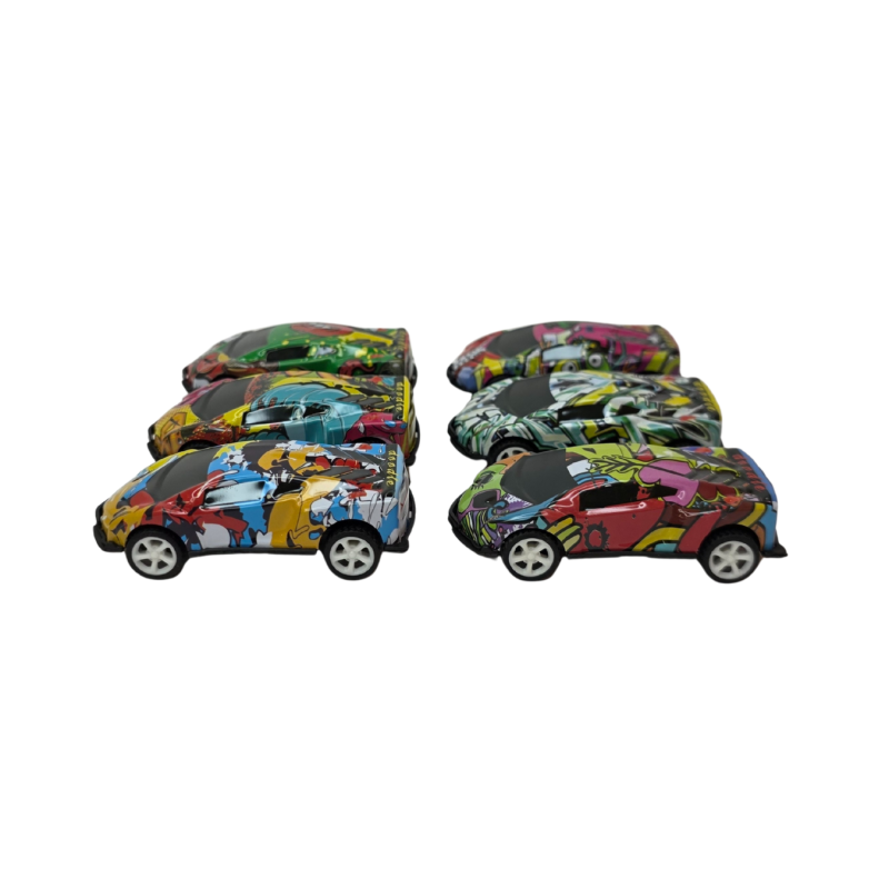 Linksmas ir ryškus žaislinių automobilių rinkinys, papuoštas spalvingais grafiti stiliaus raštais!