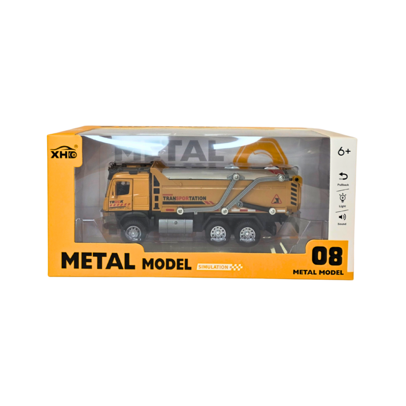Tvirtas ir realistiškas sunkvežimio modelis, skirtas mažiesiems technikos entuziastams. Pagamintas iš metalo ir kokybiško plastiko, todėl yra patvarus ir malonus žaisti. Modelis turi pull-back funkciją – patraukite sunkvežimį atgal ir paleiskite, jis pats nuriedės į priekį! Taip pat įjungiamas garsas ir šviesos, suteikiantys žaidimui daugiau tikroviškumo.