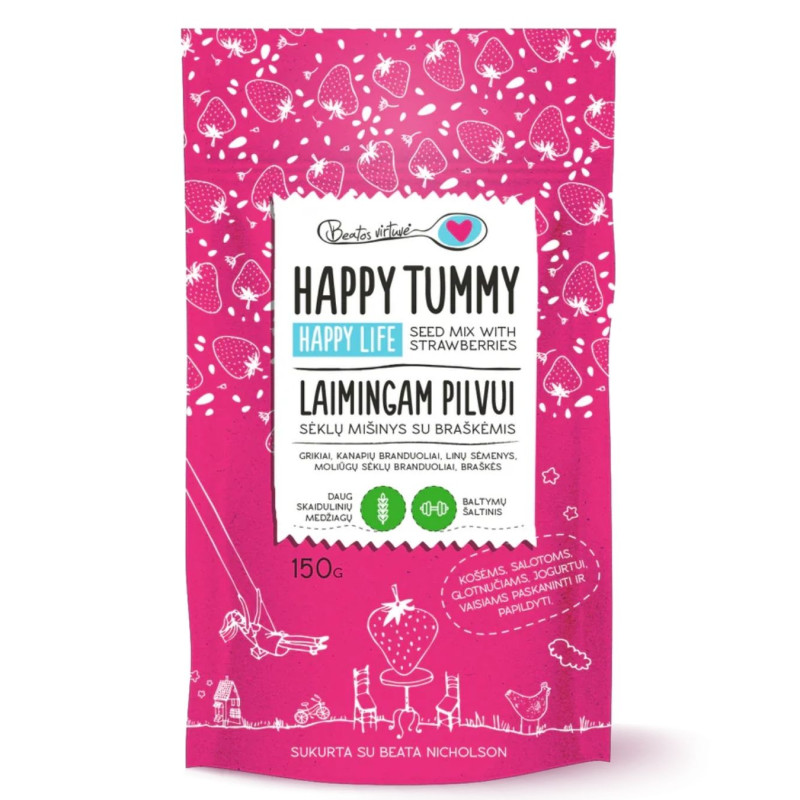 Grikiai, kanapių branduoliai, linų sėmenys, moliūgų sėklų branduoliai, braškės 10%.