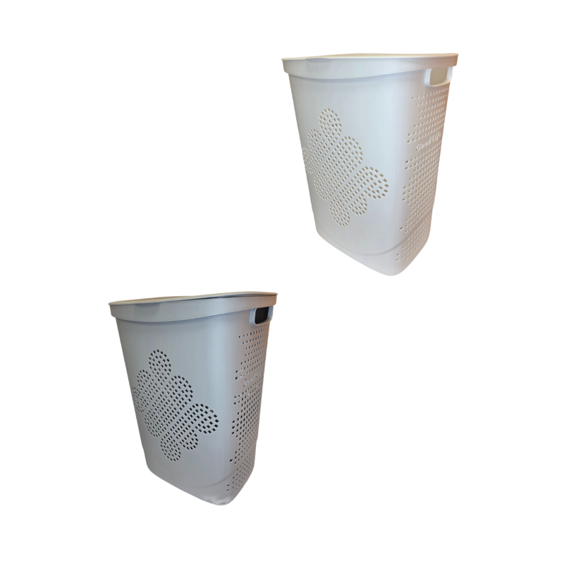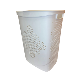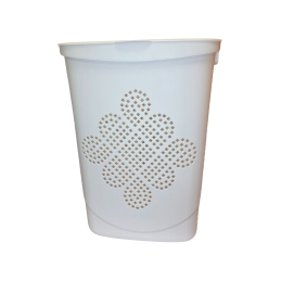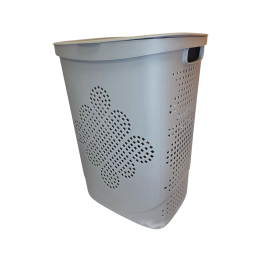Patogus ir erdvus plastikinis skalbinių krepšys su dangčiu, puikiai tinkantis tvarkai palaikyti vonios kambaryje ar skalbykloje. Krepšys dekoruotas gėlių rašto skylutėmis, kurios užtikrina gerą oro cirkuliaciją ir neleidžia susidaryti drėgmei ar nemaloniems kvapams. Patogios rankenos leidžia lengvai perkelti krepšį iš vienos vietos į kitą.