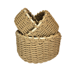 Stilingas ir tvirtas apvalus krepšelis, pintas iš storo virvinio pluošto. Natūrali rusva spalva suteikia šilumos ir jaukumo jausmą, todėl šis krepšelis puikiai dera prie skandinaviško, boho ar kaimiško stiliaus interjerų. Idealiai tinka tiek daiktų laikymui, tiek kaip dekoratyvinis elementas.