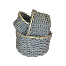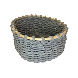 Stilingas ir funkcionalus apvalus krepšelis, pagamintas iš tvirto, stora virve pinta pluošto. Krepšelio viršus sutvirtintas mediniu rėmeliu, kuris suteikia stabilumo ir išlaiko formą. Jo natūralios, žemiškos spalvos (pilka arba rusva) lengvai dera prie įvairių interjero stilių – nuo minimalistinio iki boho ar skandinaviško. Tai ne tik praktiškas, bet ir dekoratyvus namų akcentas.