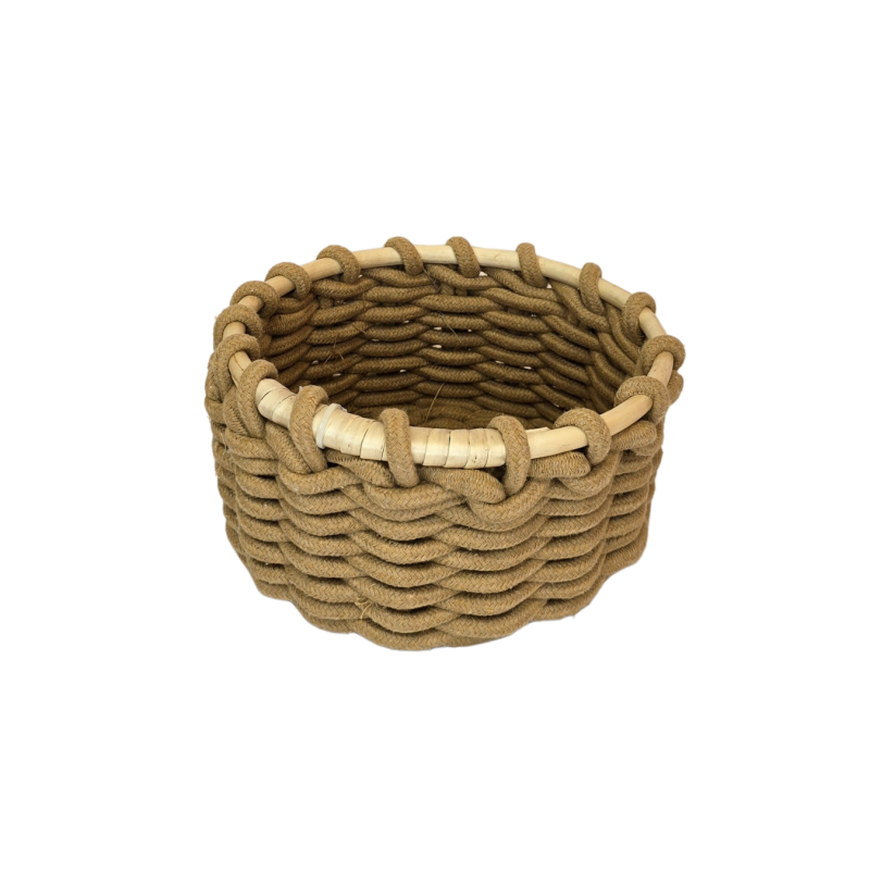 Stilingas ir tvirtas apvalus krepšelis, pintas iš storo virvinio pluošto. Natūrali rusva spalva suteikia šilumos ir jaukumo jausmą, todėl šis krepšelis puikiai dera prie skandinaviško, boho ar kaimiško stiliaus interjerų. Idealiai tinka tiek daiktų laikymui, tiek kaip dekoratyvinis elementas.