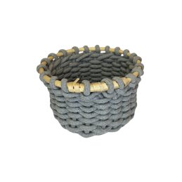 Stilingas ir funkcionalus apvalus krepšelis, pagamintas iš tvirto, stora virve pinta pluošto. Krepšelio viršus sutvirtintas mediniu rėmeliu, kuris suteikia stabilumo ir išlaiko formą. Jo natūralios, žemiškos spalvos (pilka arba rusva) lengvai dera prie įvairių interjero stilių – nuo minimalistinio iki boho ar skandinaviško. Tai ne tik praktiškas, bet ir dekoratyvus namų akcentas.
