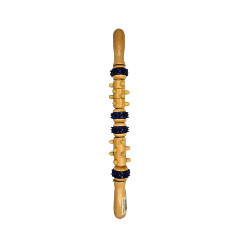 Efektyvus ir praktiškas dvipusis masažo volelis, pagamintas iš natūralaus medžio ir papildytas dygliuotais masažiniais ratukais. Skirtingų formų segmentai leidžia pasiekti gilesnius raumenų sluoksnius, pagerinti kraujotaką ir sumažinti kūno įtampą. Patogios rankenos abiejuose galuose suteikia stabilų suėmimą ir leidžia lengvai reguliuoti spaudimo intensyvumą. Puikiai tinka kojoms, sėdmenims, nugarai bei rankoms.