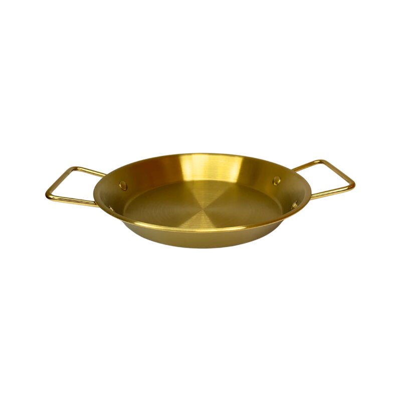Stilinga ir tvirta metalinė lėkštė su dviem patogiomis rankenomis – puikus pasirinkimas serviravimui, užkandžiams, desertams ar dekorui. Auksinė spalva suteikia prabangos įspūdį, todėl ši lėkštė puikiai dera prie šventinio ar moderniai įrengto stalo.
