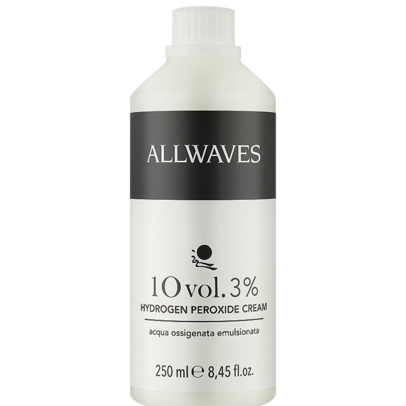ALLWAVES 10 vol. (3%) vandenilio peroksido kremas – profesionaliam naudojimui skirta oksidacinė emulsija, naudojama kartu su plaukų dažais arba šviesinimo priemonėmis. 10 vol. (3 %) stiprumas idealiai tinka tonavimui, švelniam dažymui, spalvos gilinimui ar žilų plaukų padengimui, nekeičiant arba minimaliai keičiant natūralų plaukų atspalvį.