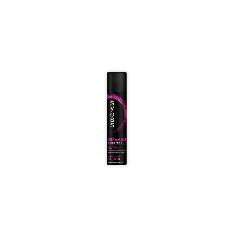 „SYOSS Ceramide 3 in 1“ plaukų lakas – formavimui, puoselėjimui, plaukų stiprinimui. Su VITAMINŲ KOMPLEKSU, PANTENOLIO ir NIACINAMIDO deriniu stiprina plaukų struktūrą. Suteikia plaukams elastingumo, atsparių šukuosenų fiksacija išlieka iki 48 val. Fiksuoja nesulipinant plaukų, nepaliekant nuosėdų, lengvai iššukuojamos.